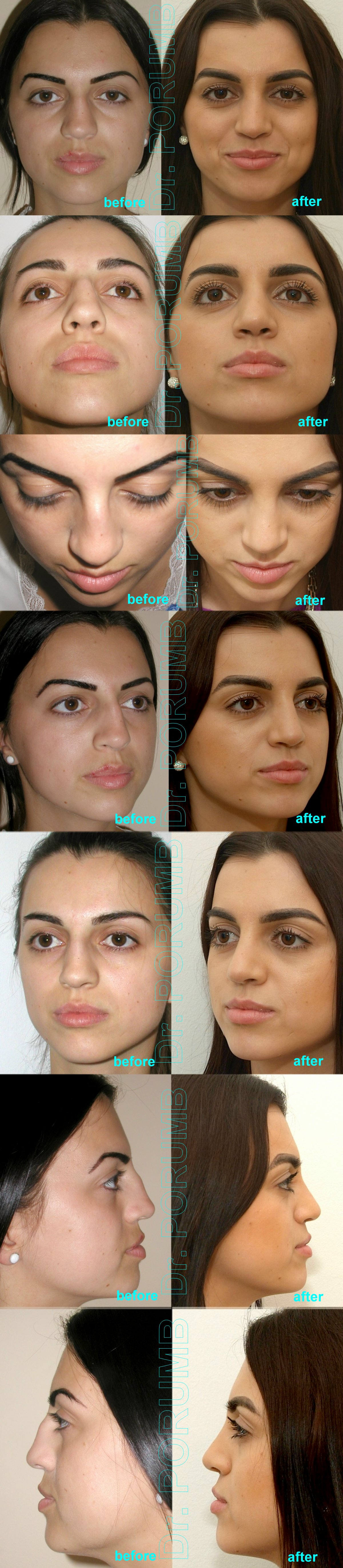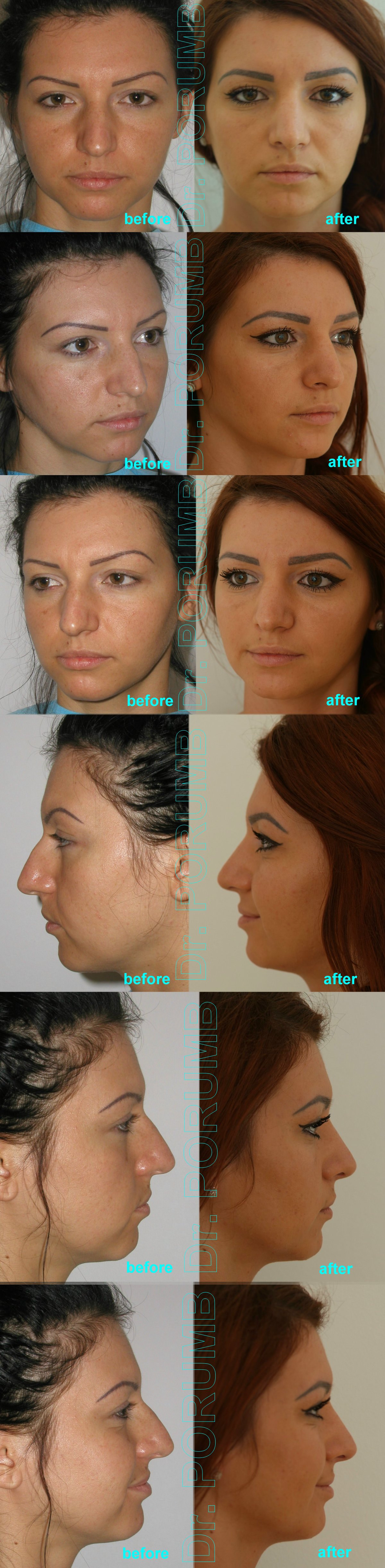 Aceste fotografii arata multiplele tipuri de rinoplastii practicate de Dr Porumb Serban. Fotografiile inainte si dupa operatie sunt cea mai buna metoda da va face o idee despre ce fel de rezultate sa va asteptati daca veti face o interventie cu Dr Porumb Serban, toate cazurile fiind operate in exclusivitate de dansul, de la inceputul pana la sfarsitul operatiei.